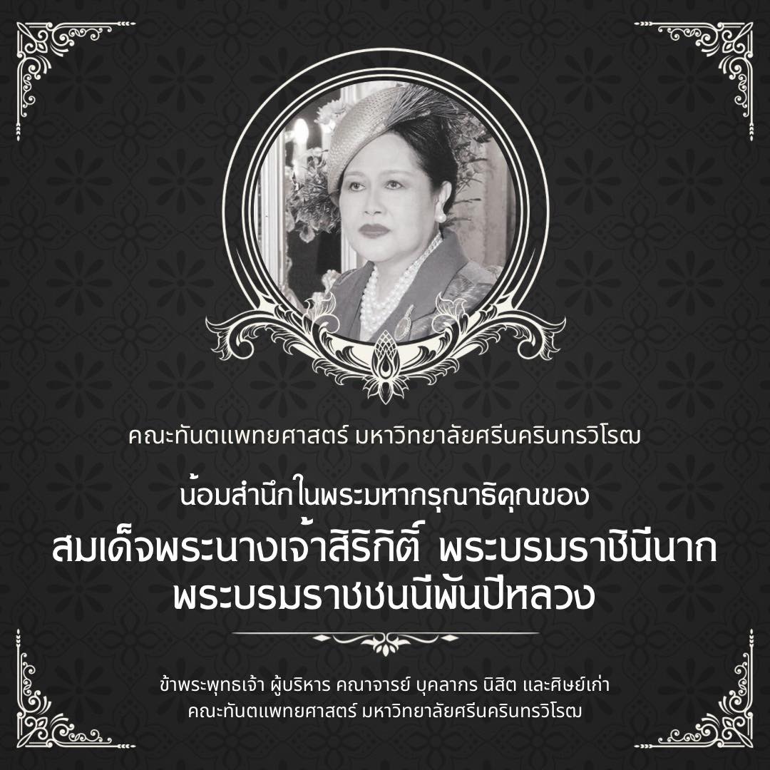 คณะทันตแพทยศาสตร์ มหาวิทยาลัยศรีนครินทรวิโรฒ น้อมสำนึกในพระมหากรุณาธิคุณของ สมเด็จพระนางเจ้าสิริกิติ์ พระบรมราชินีนาถ พระบรมราชชนนีพันปีหลวง ข้าพระพุทธเจ้า ผู้บริหาร คณาจารย์ บุคลากร นิสิต และศิษย์เก่า คณะทันตแพทยศาสตร์ มหาวิทยาลัยศรีนครินทรวิโรฒ