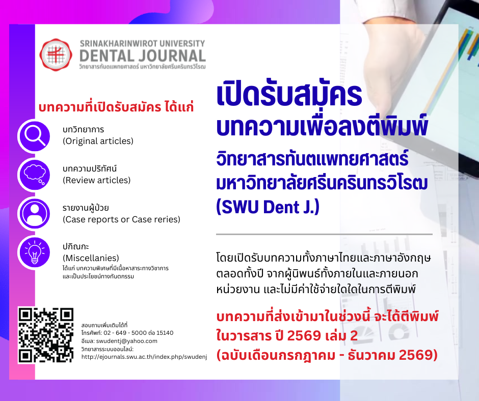 ส่งบทความเพื่อตีพิมพ์ในวิทยาสารทันตแพทยศาสตร์ มหาวิทยาลัยศรีนครินทรวิโรฒ