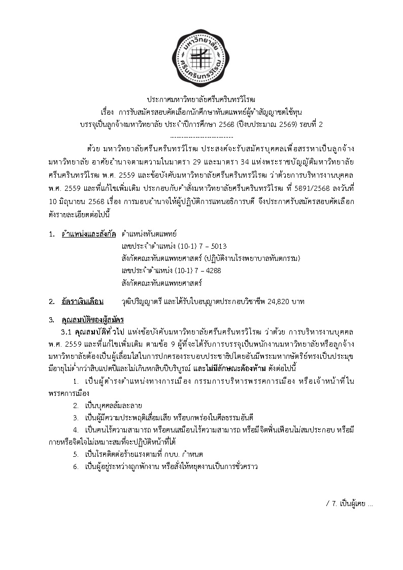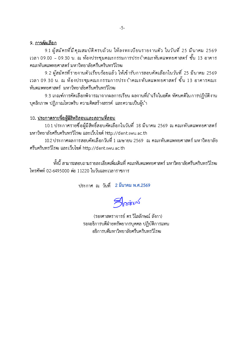 ประกาศรับสมัครสอบคัดเลือกนักศึกษาทันตแพทย์ผู้ทำสัญญาชดใช้ทุนบรรจุเป็นลูกจ้างมหาวิทยาลัย ประจำปีการศึกษา 2568(ปีงบประมาณ 2569) รอบ 2