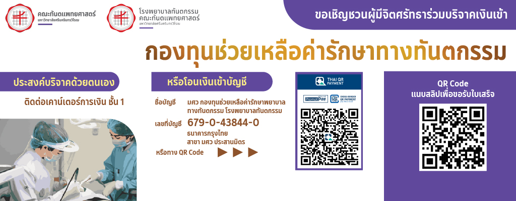 ขอเชิญชวน บุคลากร นิสิต และประชาชนที่สนใจ เข้ารับบริการทันตกรรมขูดหินปูน โดยไม่เสียค่าใช้จ่าย เนื่องในวันคล้ายวันสวรรคต พระบาทสมเด็จพระบรมชนกาธิเบศร มหาภูมิพลอดุลยเดชมหาราช บรมนาถบพิตร 1 ตุลาคม 2568