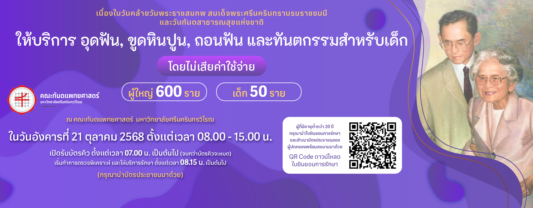 โครงการทำฟันฟรี เนื่องในวันพระราชสมภพสมเด็จพระศรีนครินทราบรมราชชนนี และวันทันตสาธารณสุขแห่งชาติ 25 กันยายน 2568